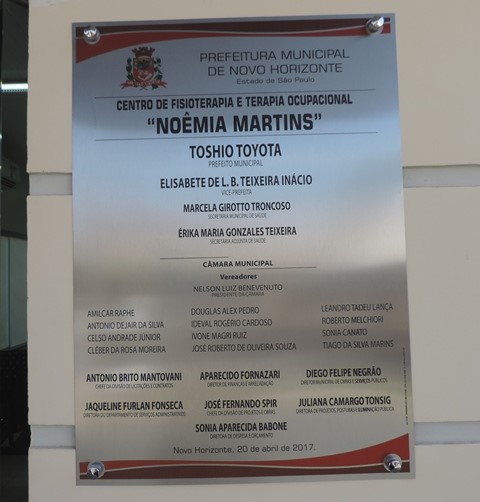 O prefeito municipal Toshio Toyota falou do emprenho da administração na conclusão da obra, agradeceu a colaboração de todos os envolvidos e disse que se sentia muito feliz em poder proporcionar um Centro de Fisioterapia e Terapia Ocupacional de qualidade para a população de Novo Horizonte.