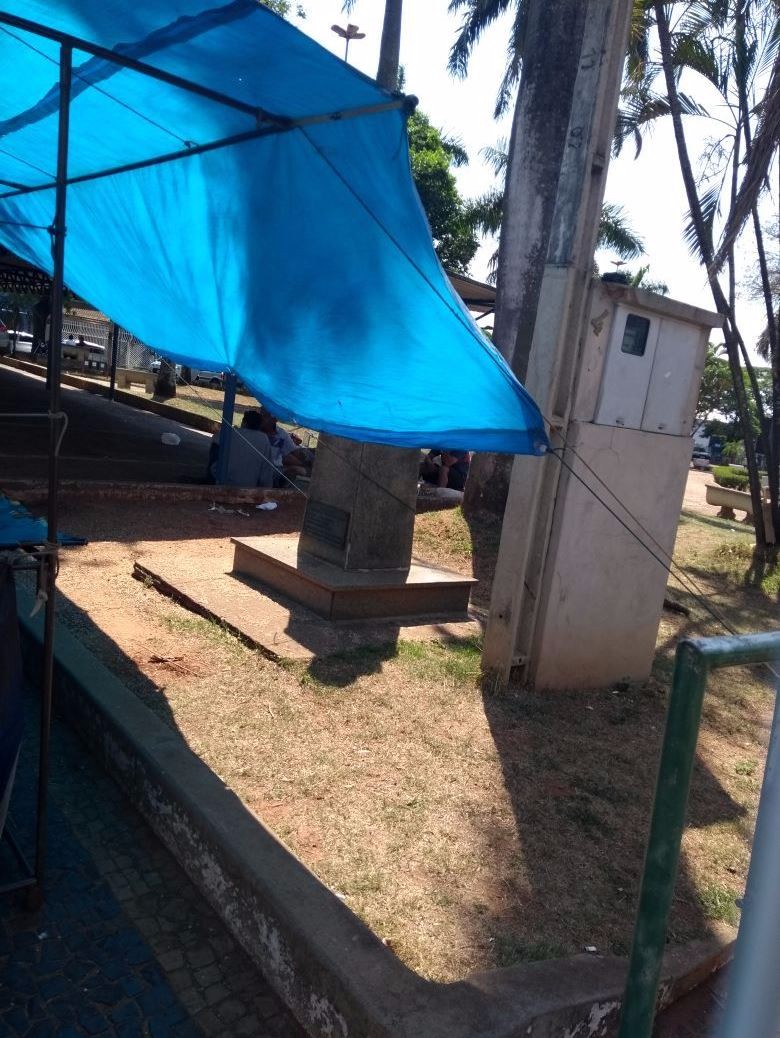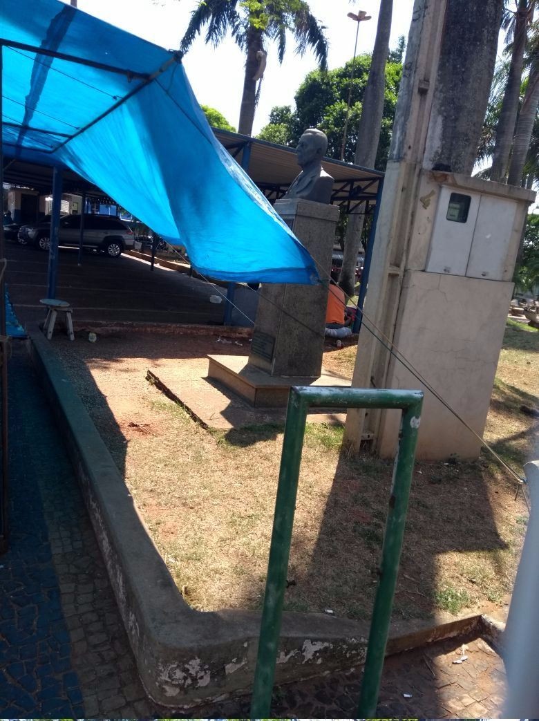 O edil explicou que vendedores ambulantes se instalam diariamente para comércio na referida praça e utilizam o busto do fundador do Município para amarrar as cordas que sustentam suas barracas.