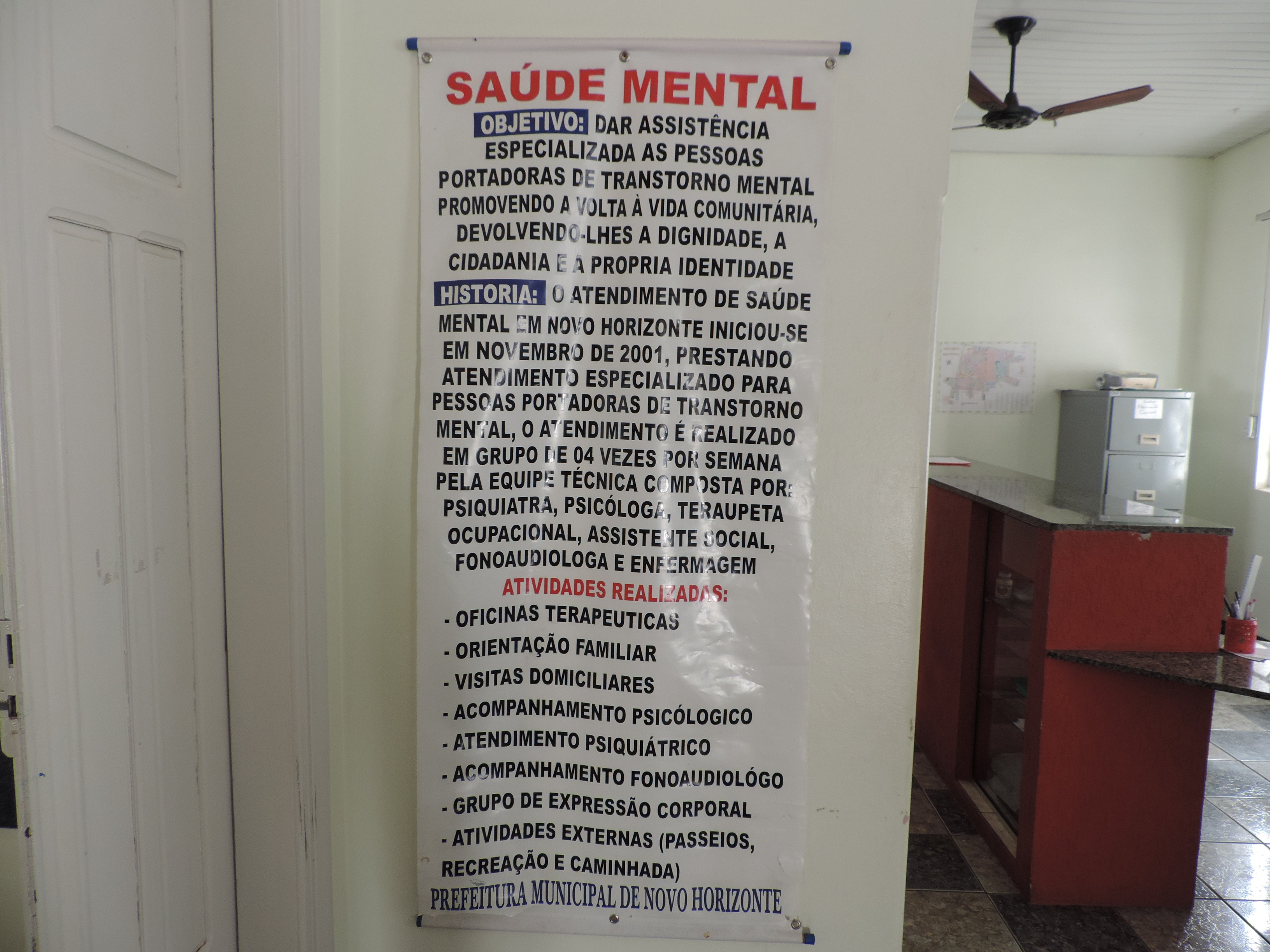 Segundo os funcionários, o Centro realiza 400 atendimentos por mês, oferecendo oficinas terapêuticas, orientação familiar, visitas domiciliares, acompanhamento psicológico, atendimento psiquiátrico, controle de medicação, entre outros.