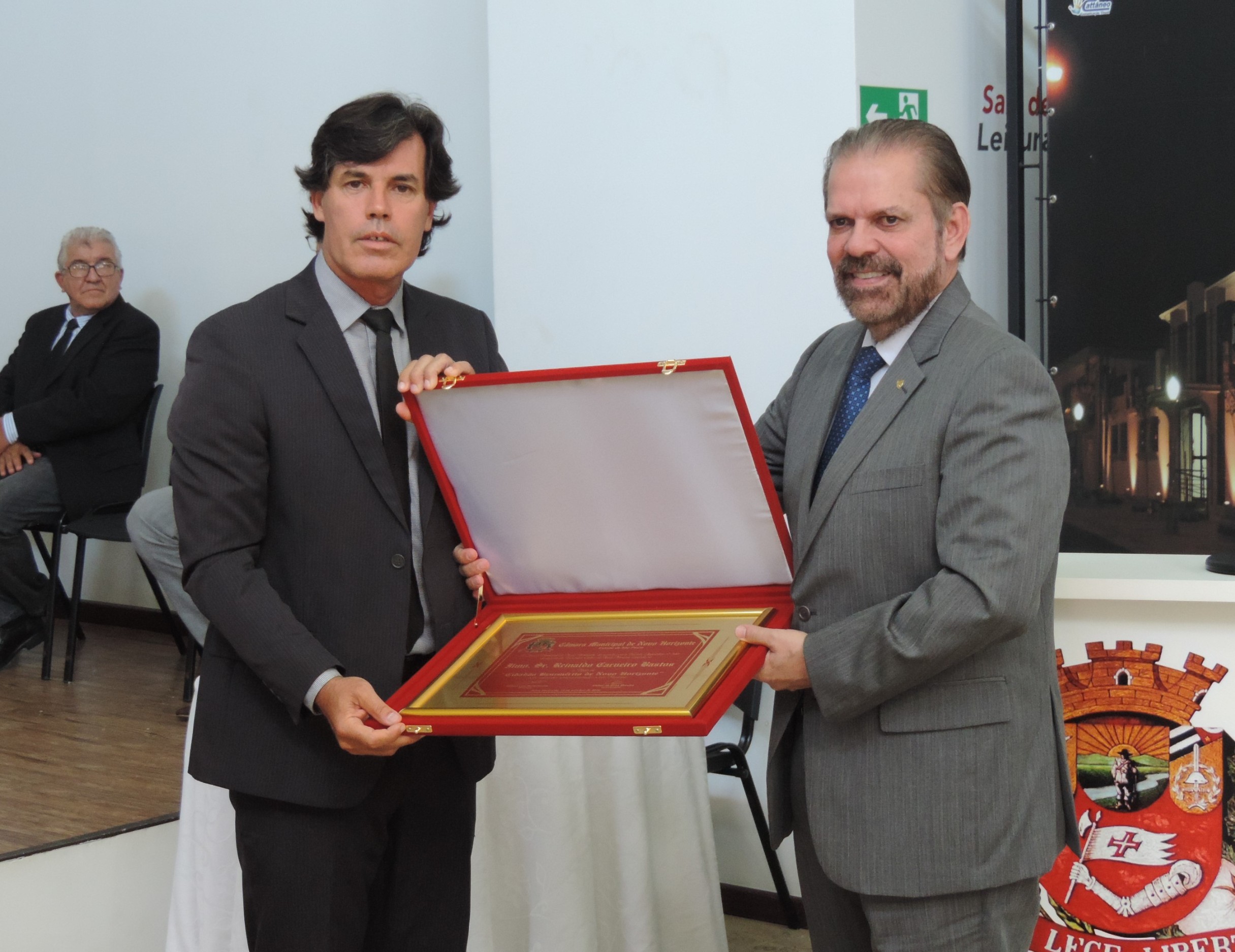 A Câmara Municipal de Novo Horizonte realizou uma sessão solene, na última segunda-feira (10), às 11h, no Centro Cultural "Gino de Biasi Filho", para entrega do Título de "Cidadão Benemérito de Novo Horizonte" ao presidente da Federação Paulista de Futebol (FPF), Reinaldo Carneiro Bastos, por iniciativa dos vereadores Cleber Gaúcho e Nelsinho Luiz; e do Diploma "Esportista do Ano" ao presidente do Grêmio Novorizontino, Genilson da Rocha Santos, por iniciativa do vereador Beto de Souza.