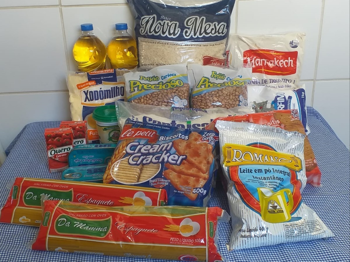 A cesta básica é composta por arroz, feijão, macarrão, óleo vegetal, sal, extrato de tomate, farinha, fubá, açúcar, sardinha enlatada, leite em pó, biscoito tipo água e sal e tipo maisena e tempero completo; o kit higiene é composto de pasta de dente, papel higiênico e sabonete.