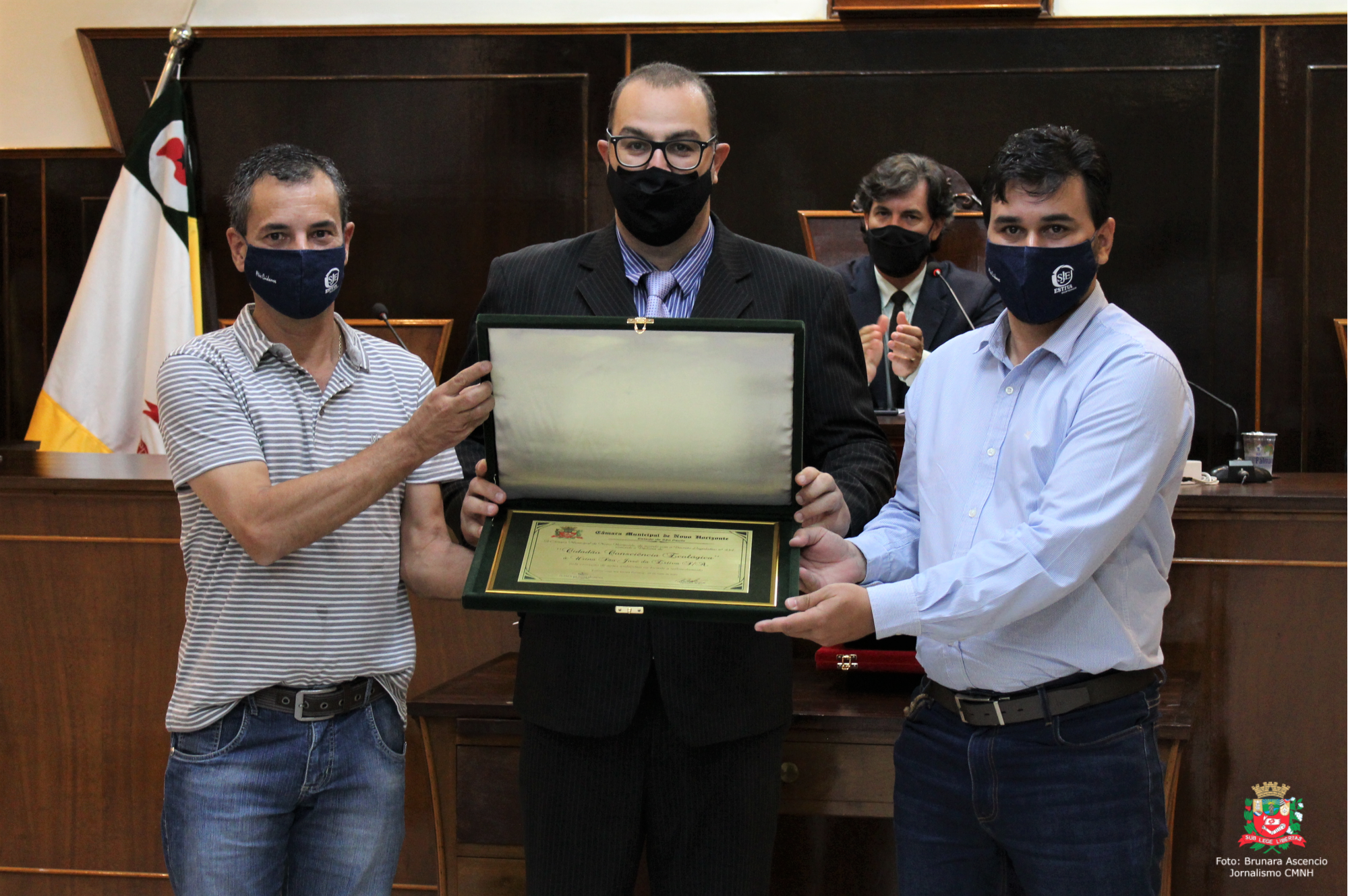 O Título de Cidadão Novo-Horizontino foi entregue à Pastora Eliana Andrade, concedida pelo vereador Jair Gordo; e ao Pastor Gunnar Teixeira, concedida pelo vereador Pastor Celso Jr. A honrara pode ser outorgada para quem não nasceu no Município, mas aqui residindo, tenha colaborado com iniciativas em benefício de Novo Horizonte e da coletividade.
