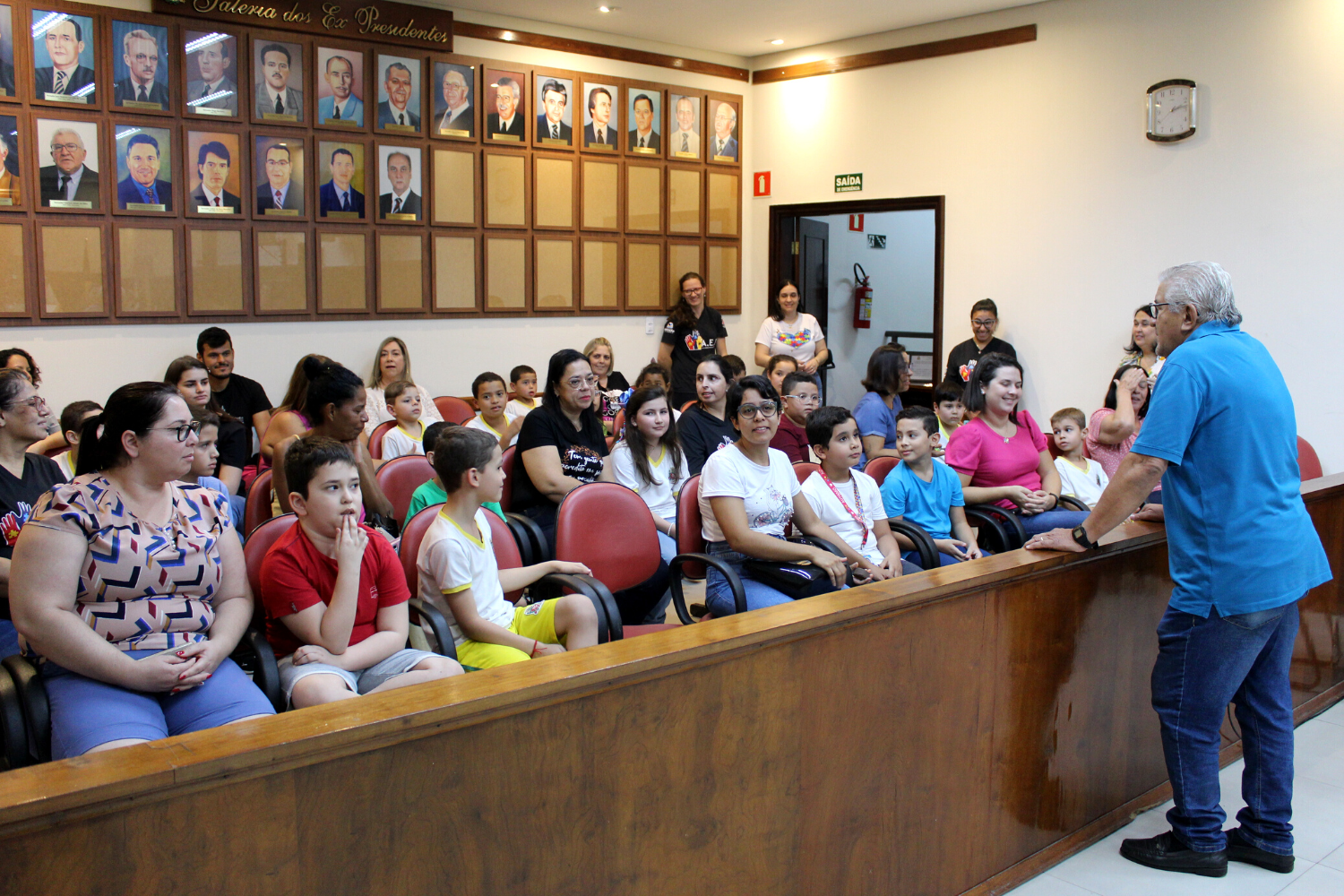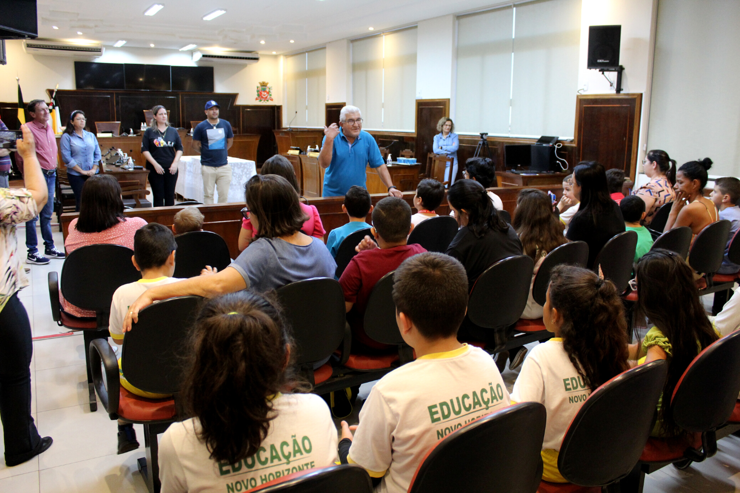 Os alunos participaram de um Projeto para conhecer o funcionamento do Poder Legislativo do Município. Para que eles pudessem ter uma vivência sobre o assunto, realizaram uma eleição sobre qual o local que iriam passar o dia das crianças. A apuração dos votos ocorreu no Plenário da Câmara durante a visita e o local vencedor foi o Mundo da Alegria, com 17 votos.