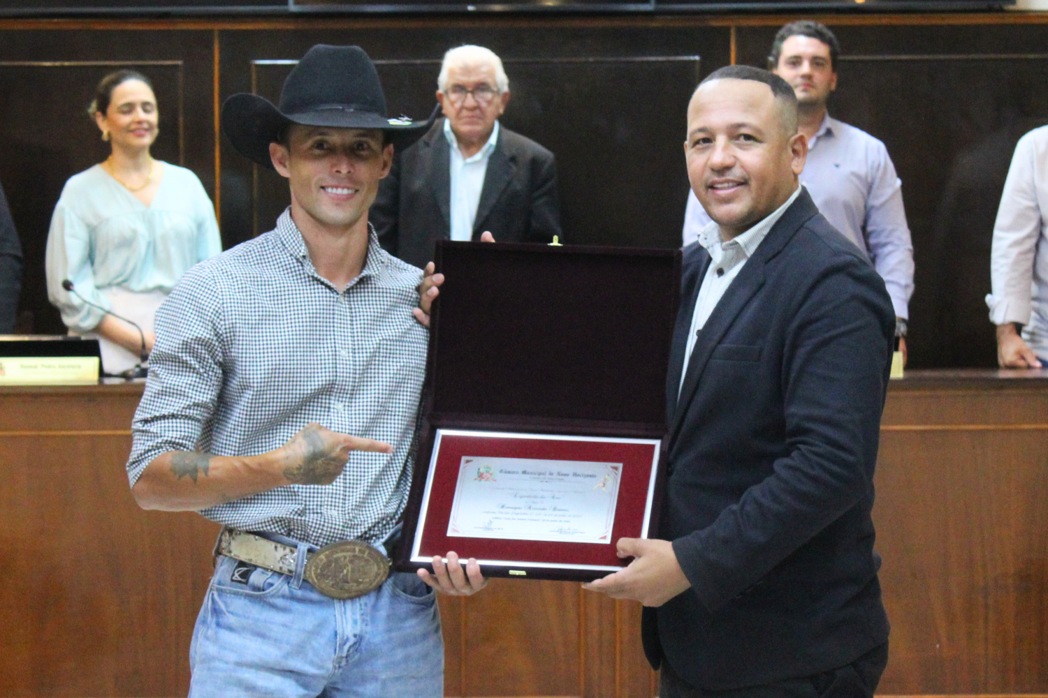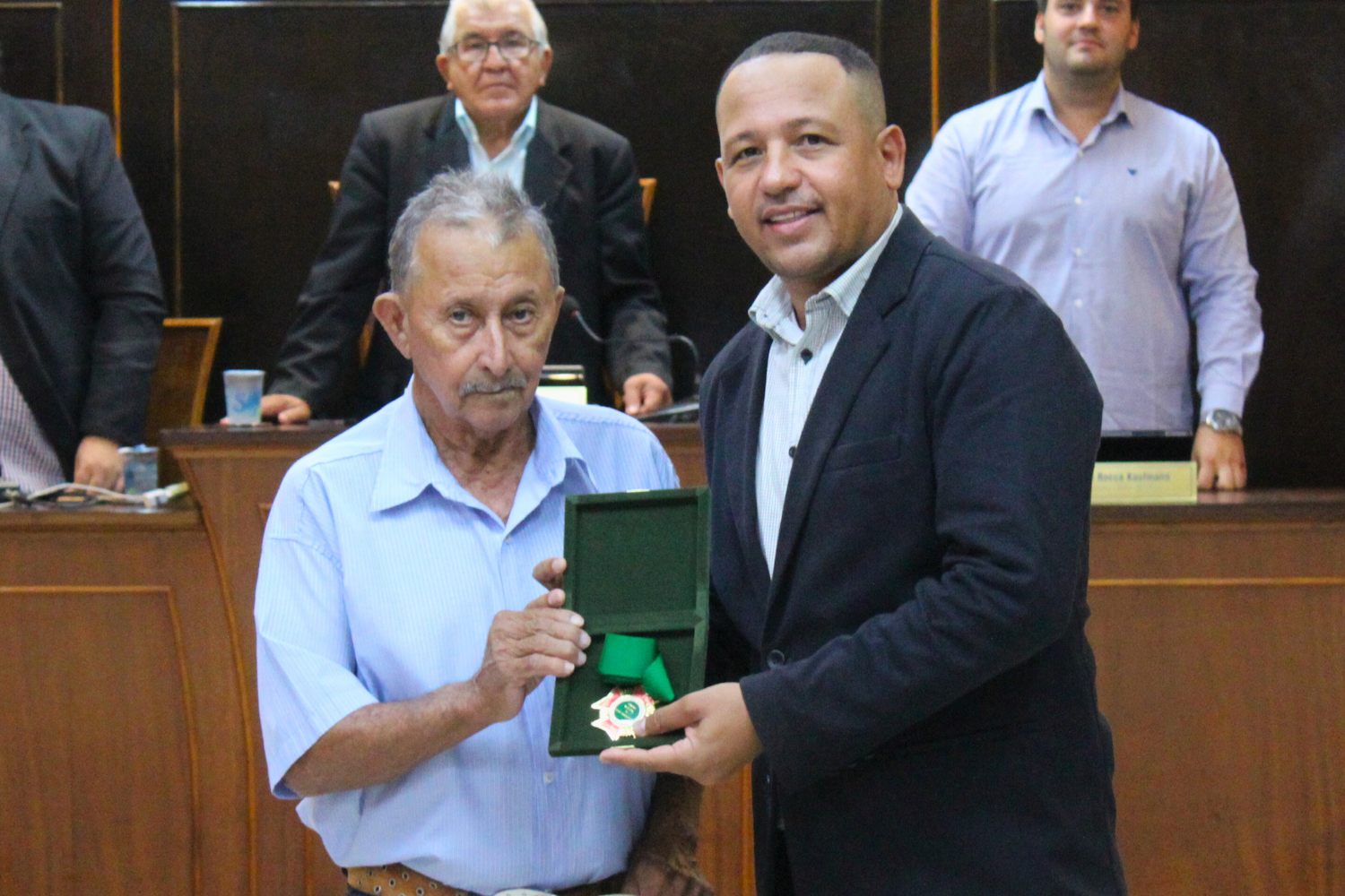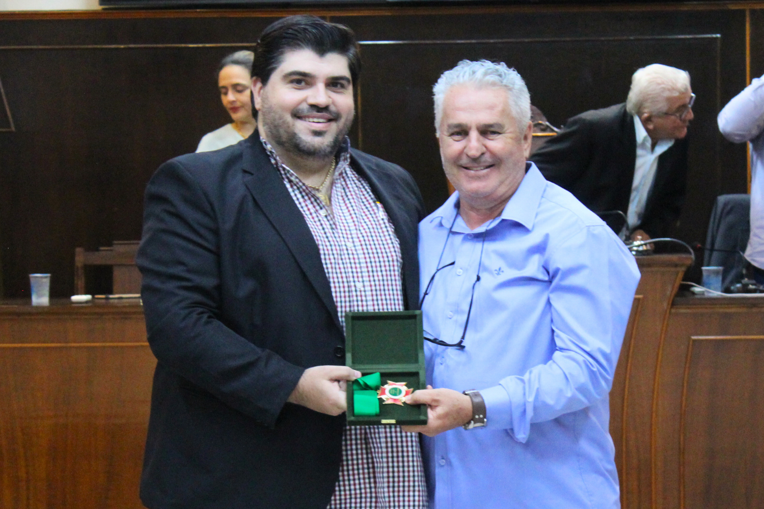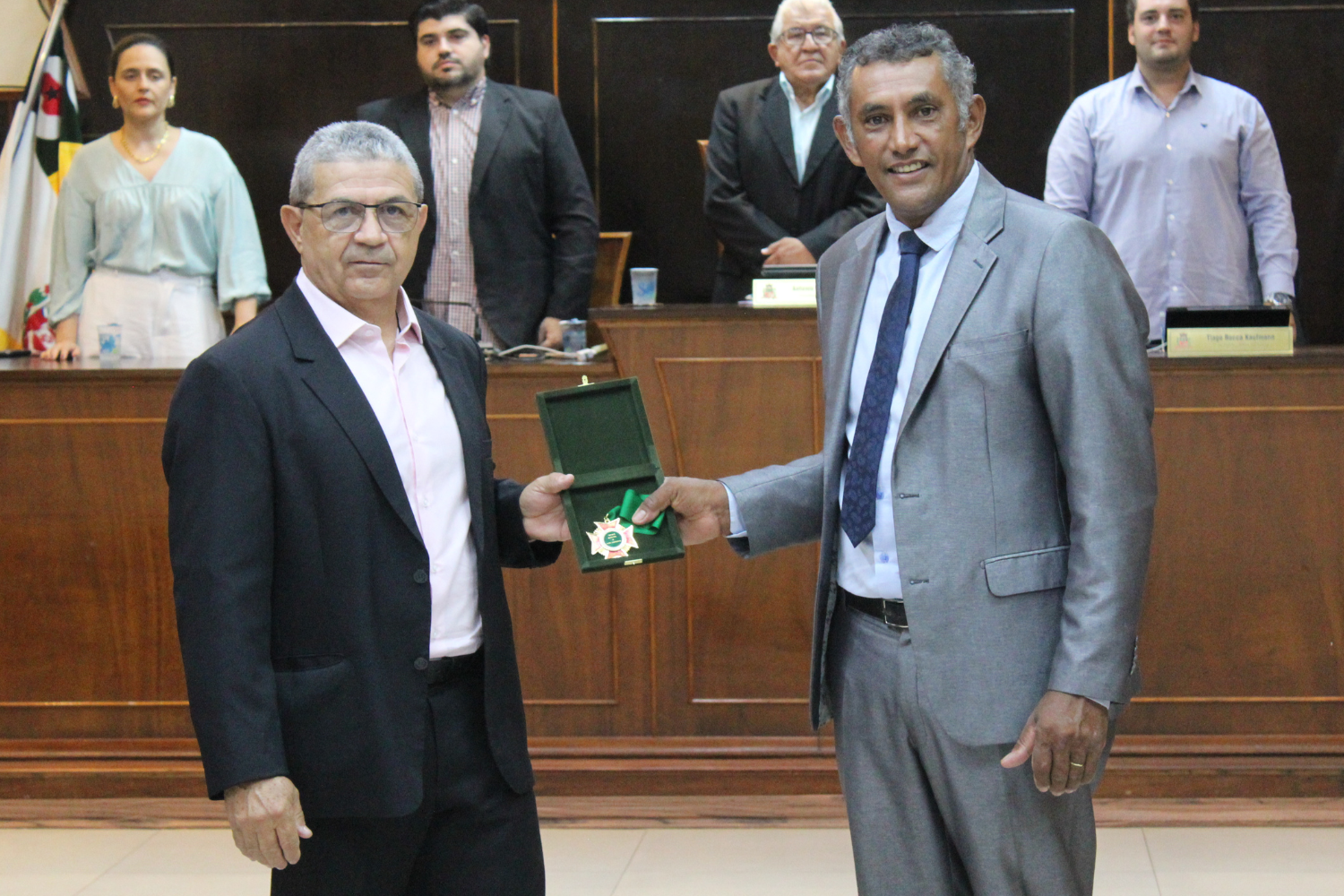 O Vereador Vasquinho fez a entrega de Medalhas "28 de Outubro" a Carlos Alberto Pereira de Carvalho e à Cooperativa de Eletrificação e Desenvolvimento Rural da Região de Novo Horizonte – CERNHE. O Vereador Rodrigo do Prado fez a entrega de Medalha "28 de Outubro" a Fernando Nemi Costa.
