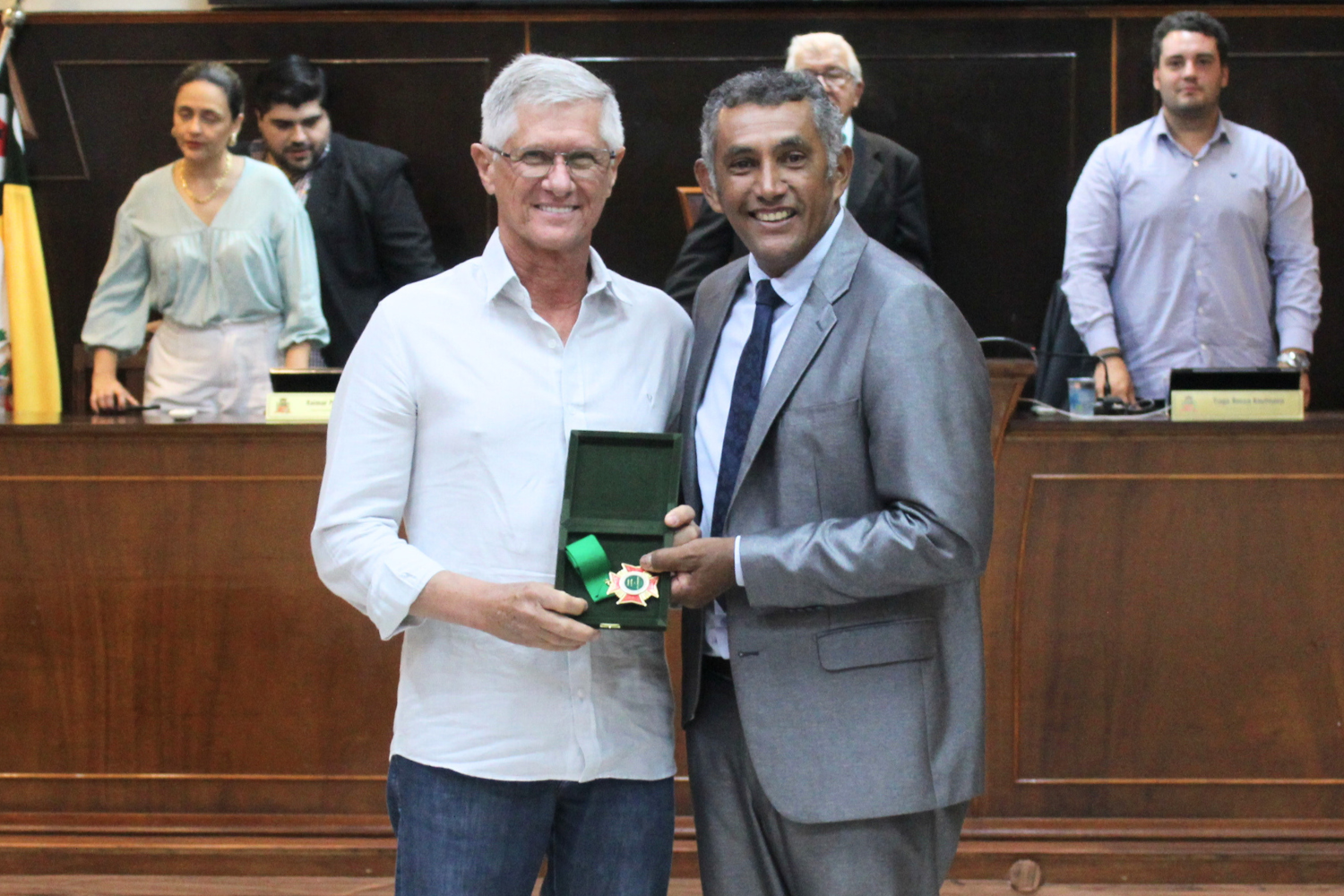 A Câmara Municipal realizou uma Sessão Solene, na quinta-feira (31), às 19h, no Plenário, para entrega de 12 Medalhas "28 de Outubro" e um Diploma "Esportista do Ano".