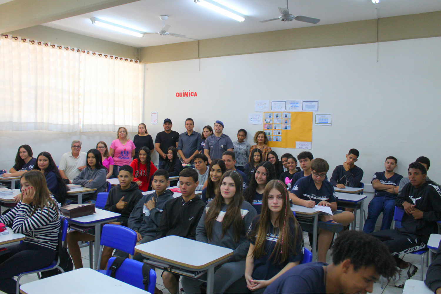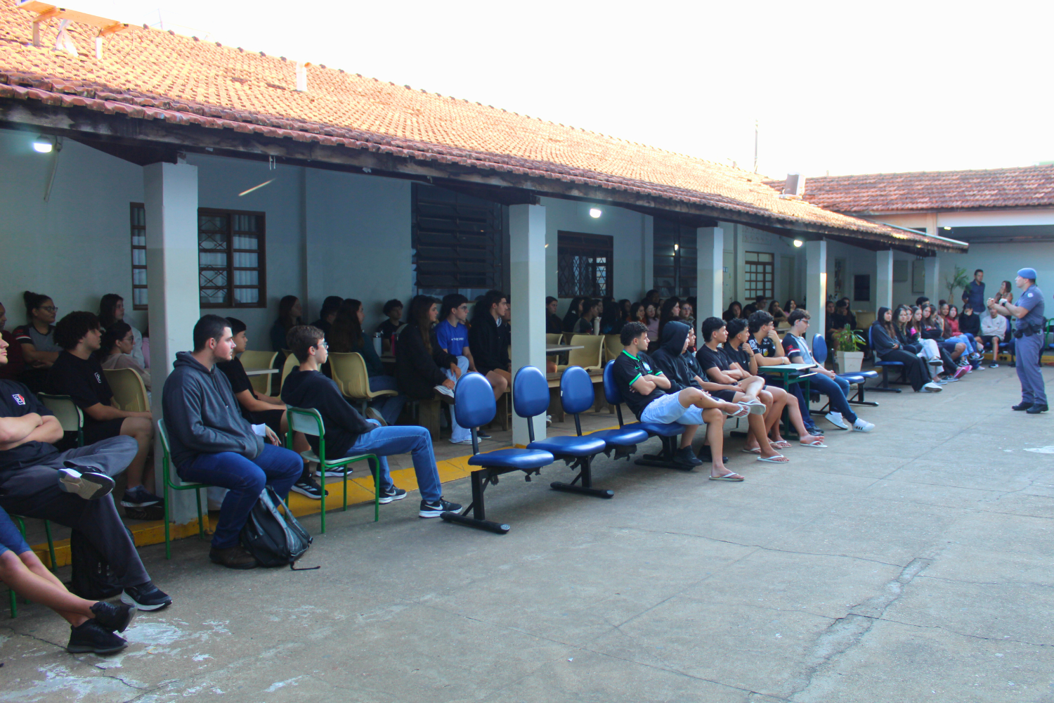 O palestrante foi o Subtenente da Polícia Militar João Henrique Arosti, que apresentou aos jovens uma série de assuntos que permeiam a segurança no trânsito, que envolve pedestres, ciclistas, motociclistas e motoristas e o papel de cada um para um trânsito mais seguro; destacou a questão do controle emocional em situações de estresse no trânsito; falou sobre imprudências, distrações e negligências; uso de celular e bebidas alcoólicas; o uso de bicicletas, autopropelidos e patinetes elétricos; entre outros.
