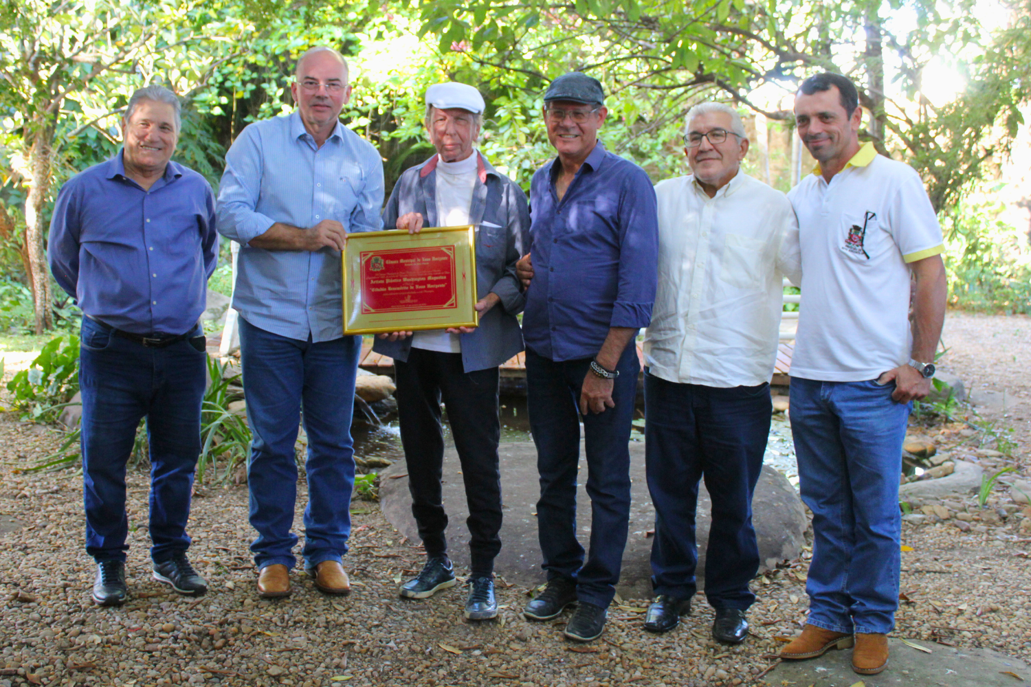 O Vereador Antonio Dejair da Silva fez a entrega, na quinta-feira (15), do Título de "Cidadão Benemérito de Novo Horizonte" ao Artista Plástico Washington Maguetas, escultor da Fonte Luminosa da Praça "Dr. Euclydes Cardoso Castilho", acompanhado do Prefeito Fabiano Belentani, do Presidente da Câmara Nelsinho Luiz e do escultor novo-horizontino José Natal Torsani. Dejair é autor do Decreto Legislativo nº 488/23 que concedeu a homenagem à Meguetas.
